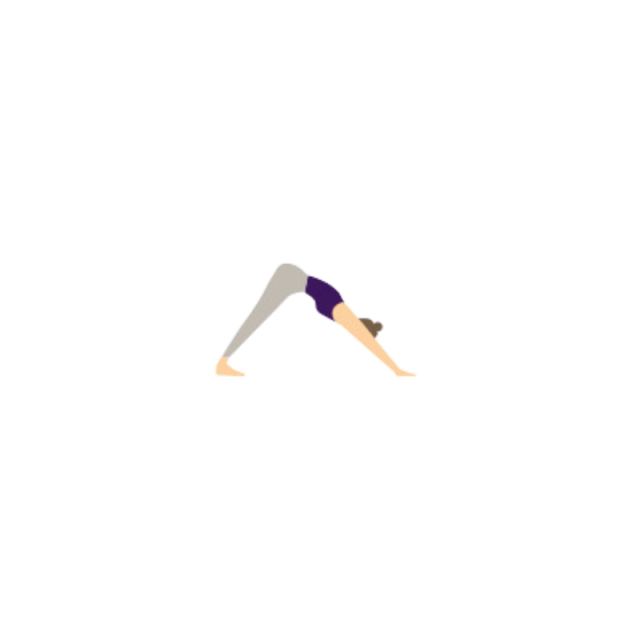 4. Downward facing dog: Bend knees one by one, stretching out the back of the legs